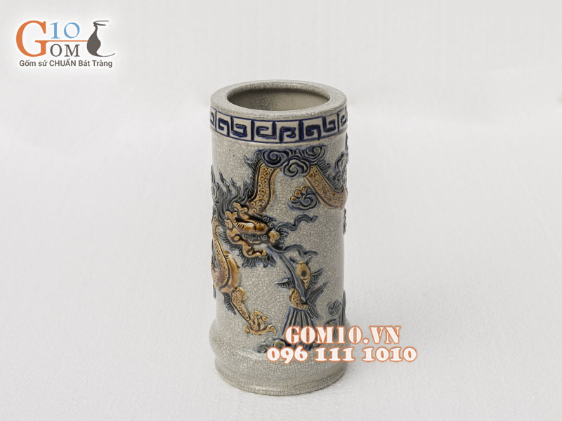 Ống hương men rạn cổ đắp nổi Rồng cao cấp Bát Tràng