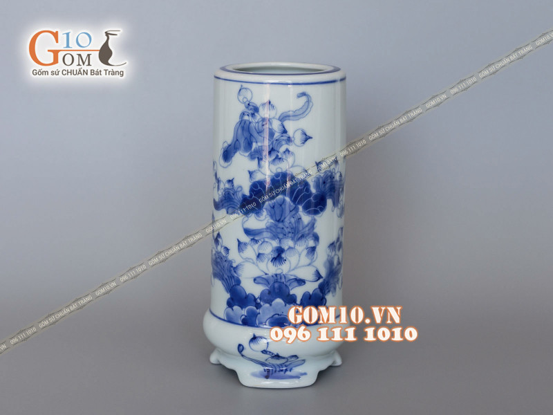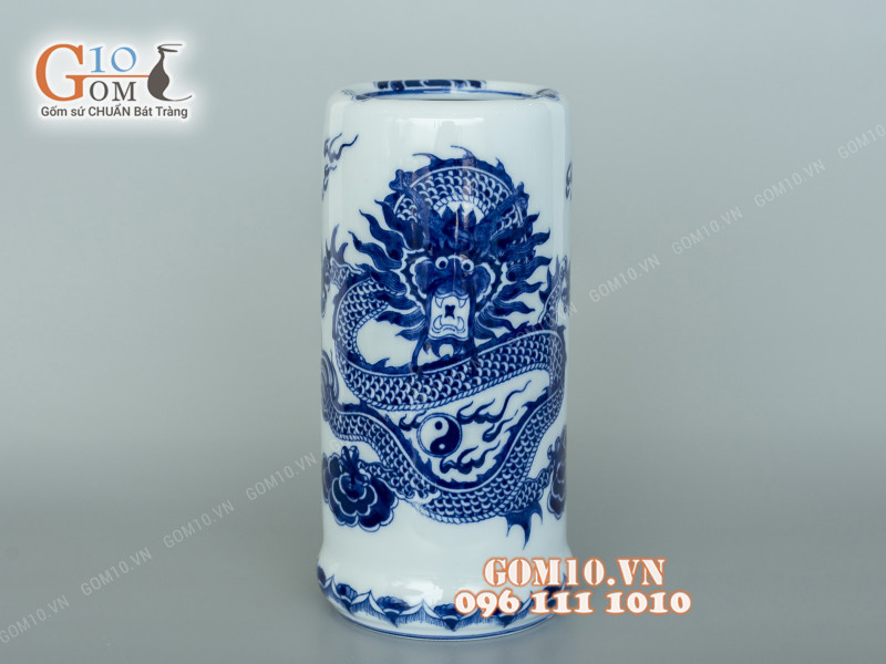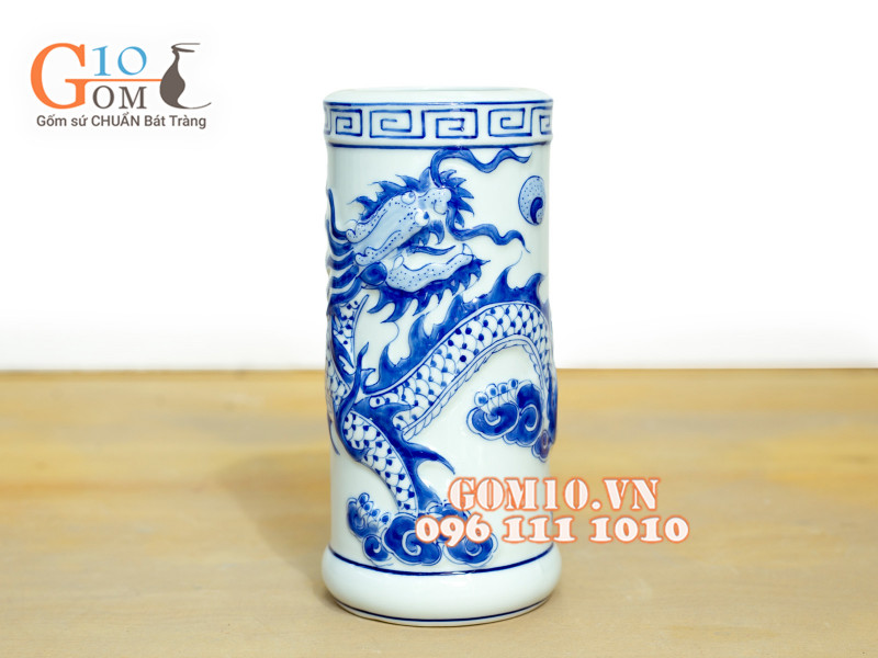 Ống hương men lam khắc nổi Rồng cao cấp Bát Tràng