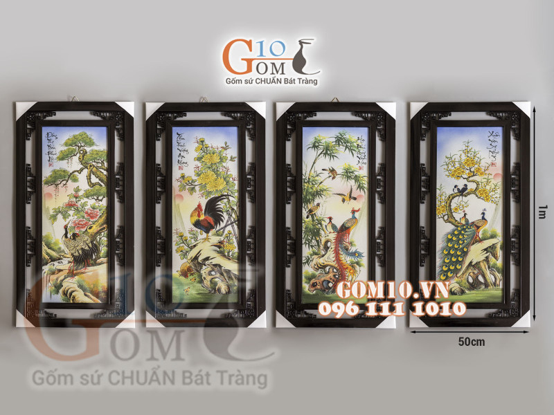 Bên cạnh đó quý khách có thể tham khảo một số mẫu tranh tứ cảnh được sản xuất chính hãng tại làng gốm Bát Tràng được cung cấp bởi Gốm 10 – Gốm sứ chuẩn Bát Tràng.