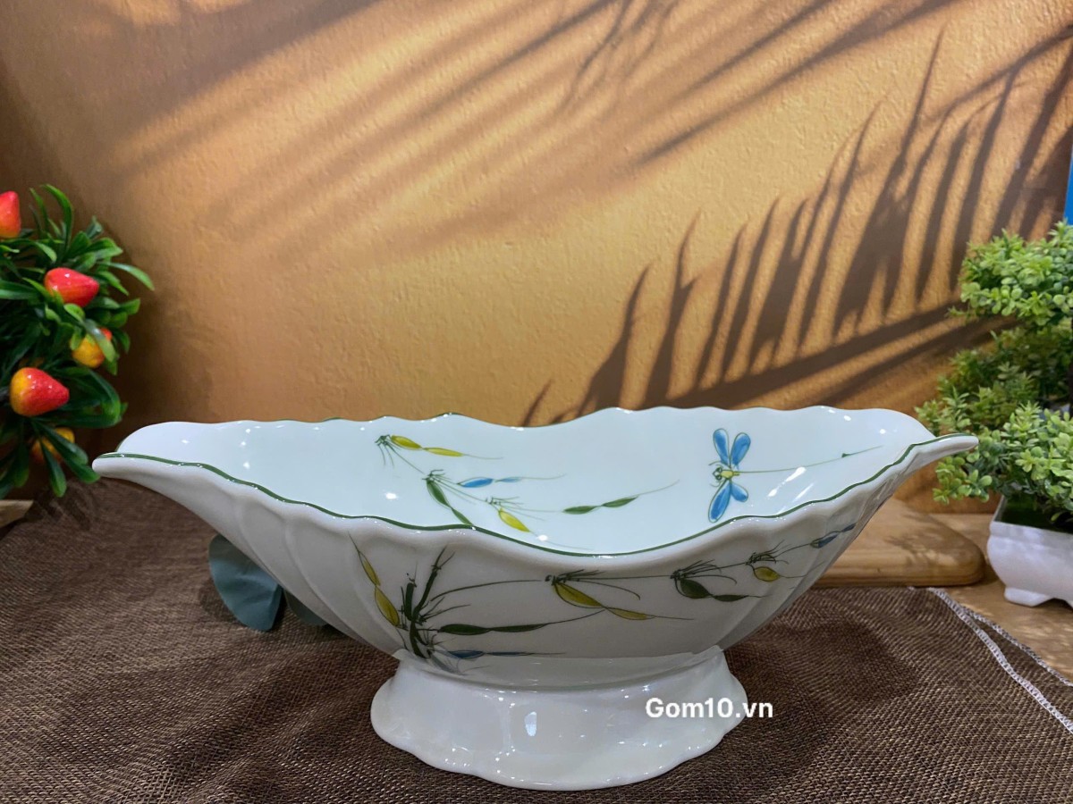 Bát thuyền sâu men kem vẽ Trúc Chuồn, 30x17cm Bát thuyền sâu men kem vẽ Trúc Chuồn, 30x17cm