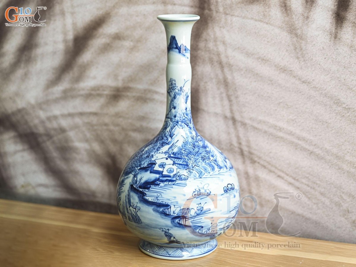 Bình gốm sứ Bát Tràng được làm thủ công 100% bằng đất sét nung ở nhiệt độ cao tại làng gốm Bát Tràng. Hiện nay, bình gốm sứ bát tràng ngày càng được nhiều người tìm mua khi hiểu được ý nghĩa phong thủy không hề nhỏ của nó.