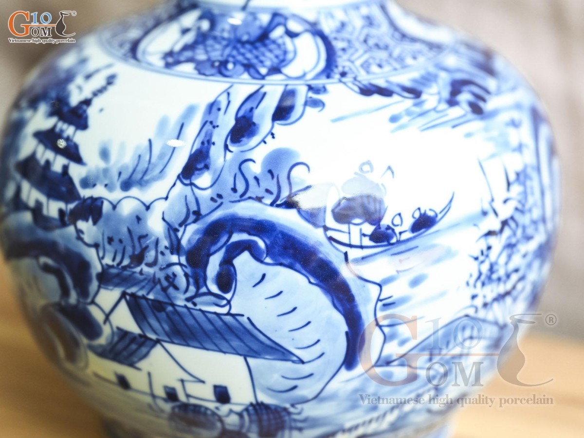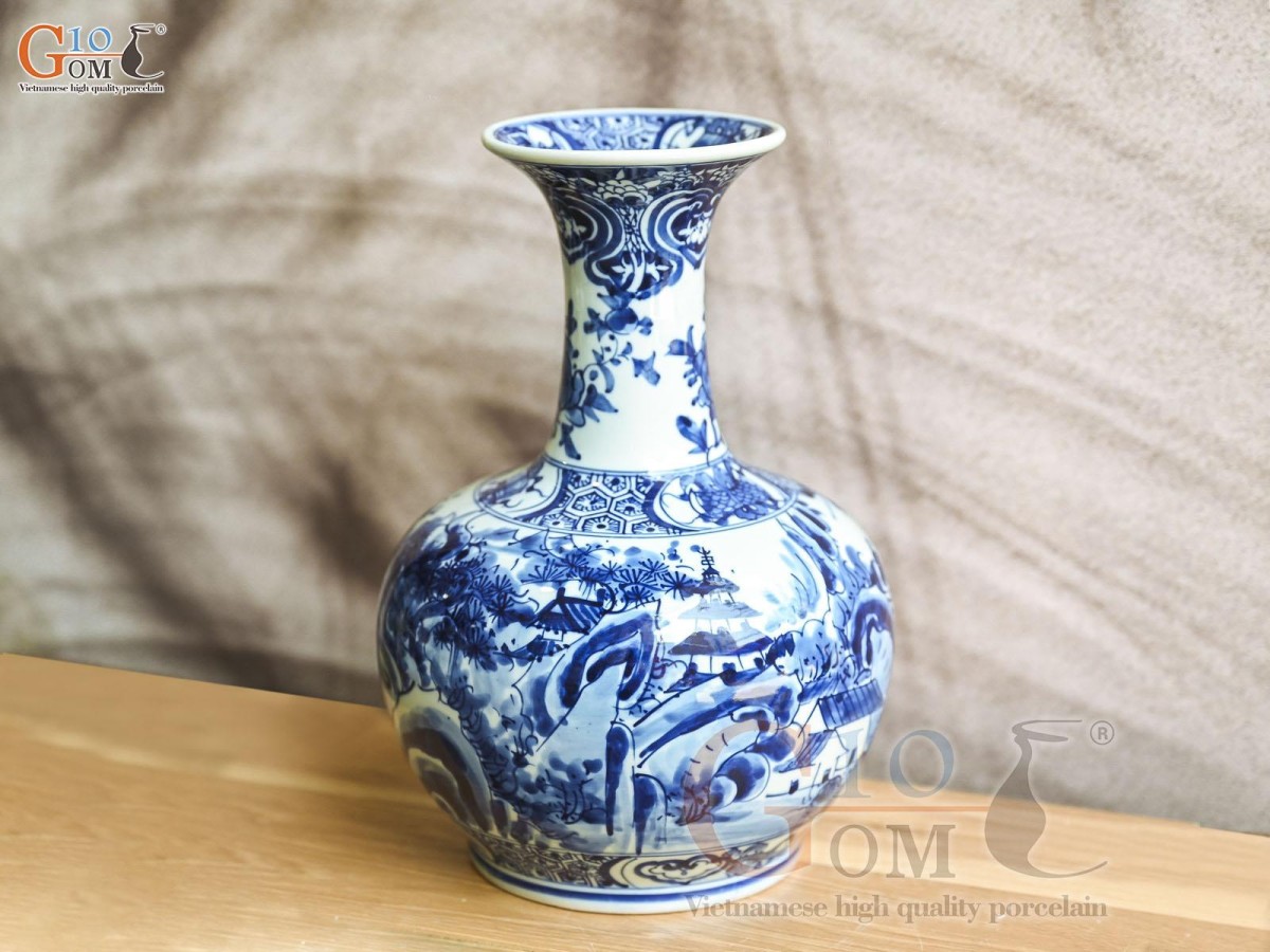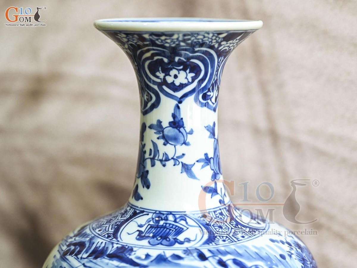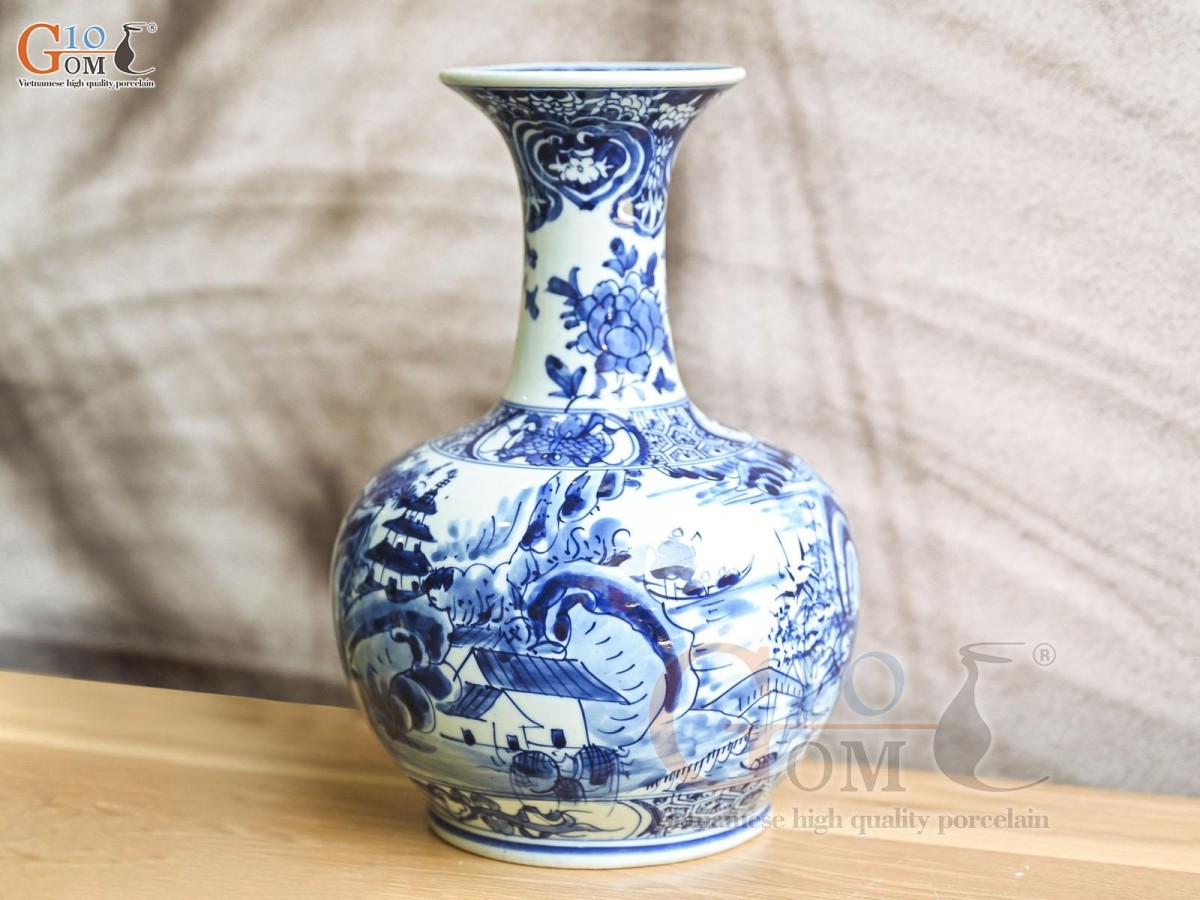 Bình gốm sứ Bát Tràng được làm thủ công 100% bằng đất sét nung ở nhiệt độ cao tại làng gốm Bát Tràng. Hiện nay, bình gốm sứ bát tràng ngày càng được nhiều người tìm mua khi hiểu được ý nghĩa phong thủy không hề nhỏ của nó.