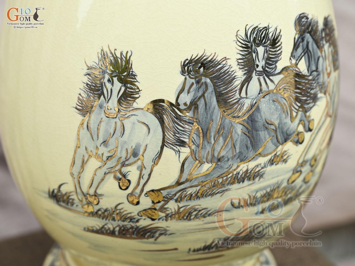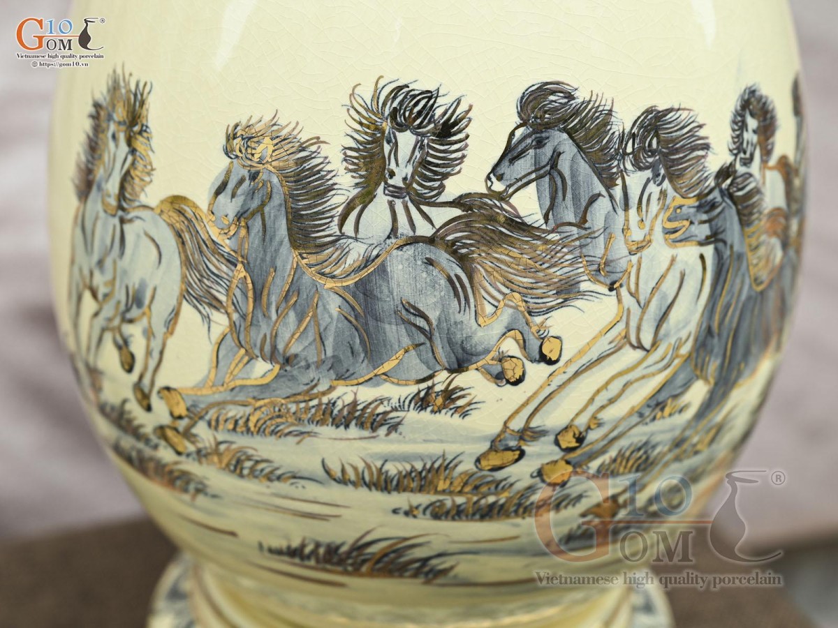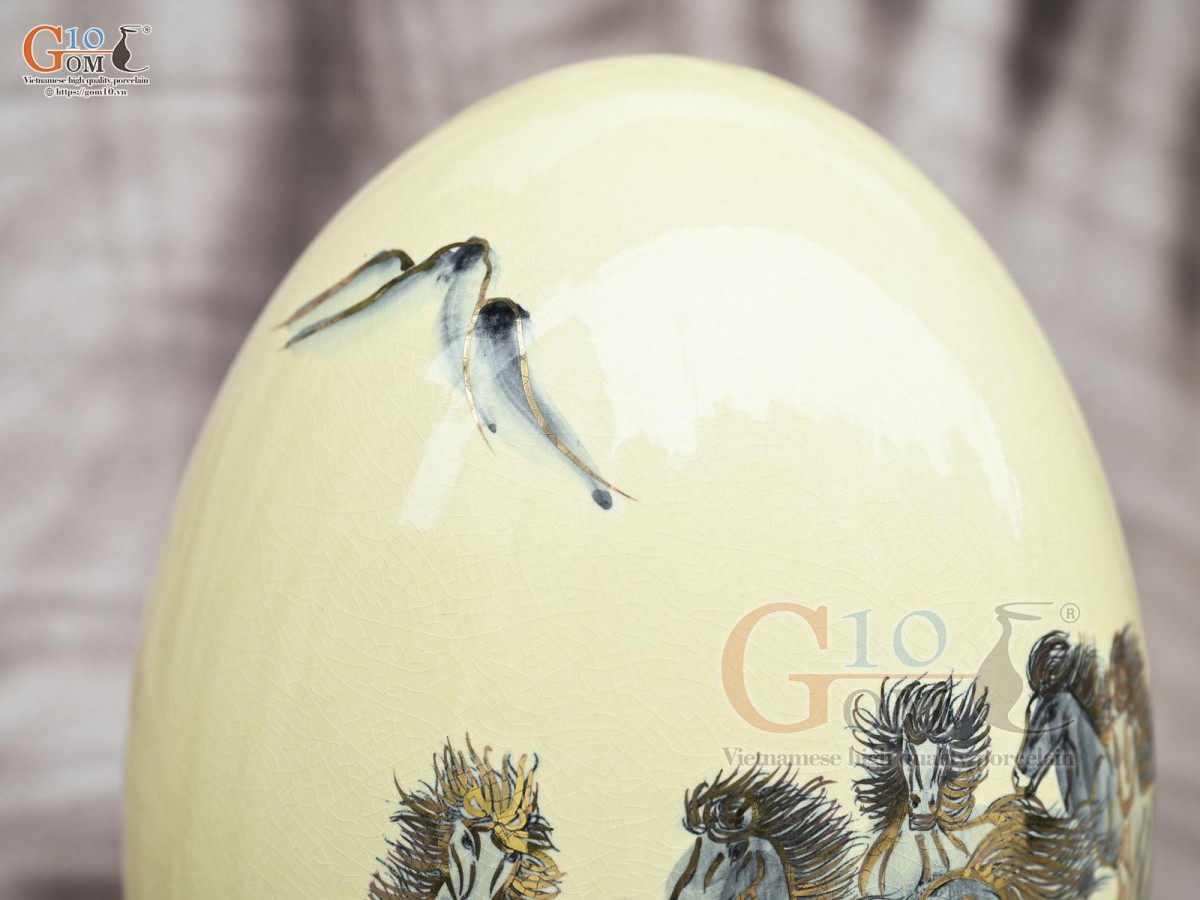Bình trứng phong thủy men cổ họa tiết Mã Đáo Thành Công vẽ vàng 24k, cao 34cm (cả đế)