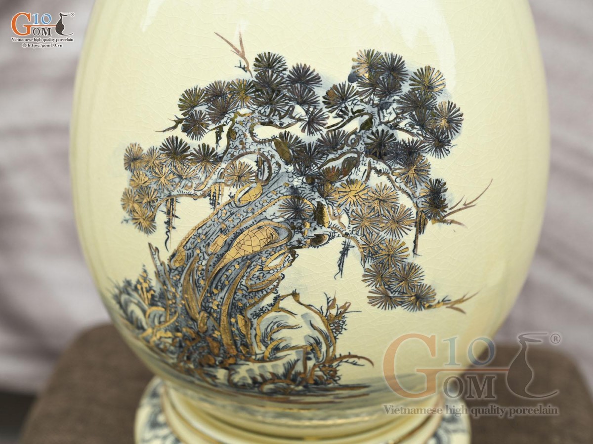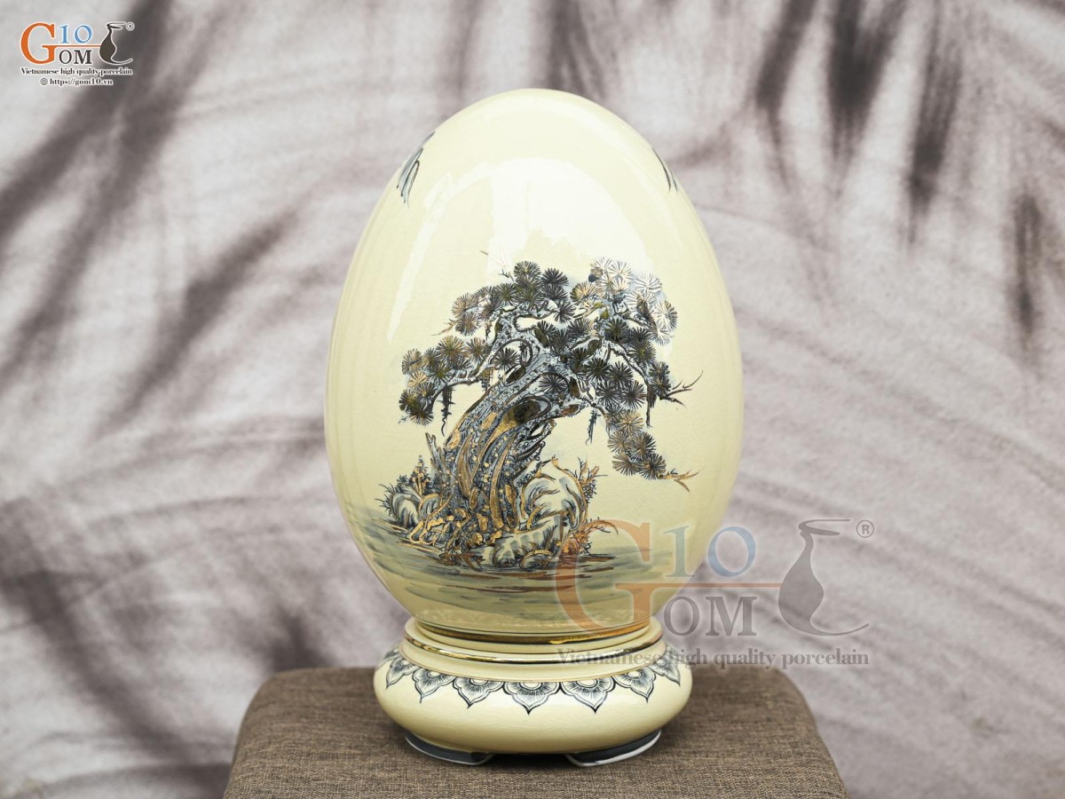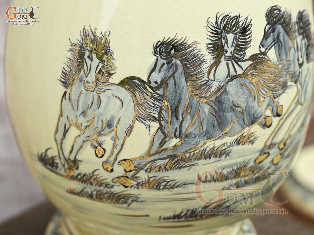 Bình trứng phong thủy men cổ họa tiết Mã Đáo Thành Công vẽ vàng 24k, cao 34cm (cả đế)