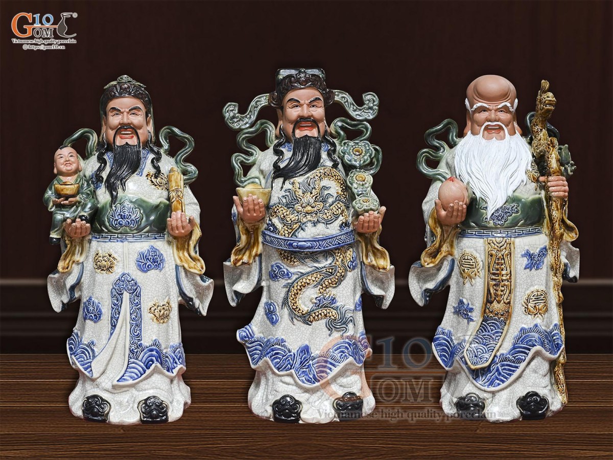 Hiện tay có khá nhiều tượng Phúc Lộc Thọ bằng các chất lượng khác nhau, tùy vào như : Gỗ - Đá - Đồng - Gốm Sứ... tuy nhiên chất liệu Gốm Sứ vẫn luôn là thông dụng nhất và được sử dụng rất nhiều ở các gia đình, quán ăn và các địa điểm kinh doanh. Và Gốm sứ Bát Tràng vẫn luôn là sự lựa chọn hàng đầu của khách hàng.