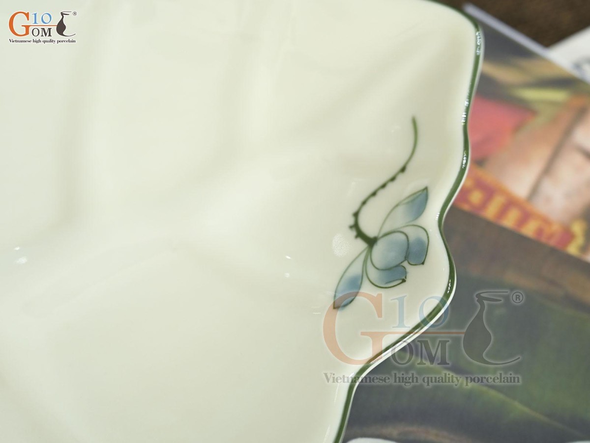 Gốm 10 - Gốm sứ chuẩn Bát Tràng giới thiệu đến quý khách hàng bộ đĩa ăn Bát Tràng cao cấp , cam kết chất lượng với các đặc tính nổi bật như chịu va đập mạnh , khó bể , sứt mẻ , chống trầy xước , vệ sinh dễ dàng .