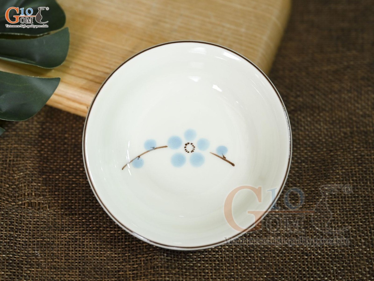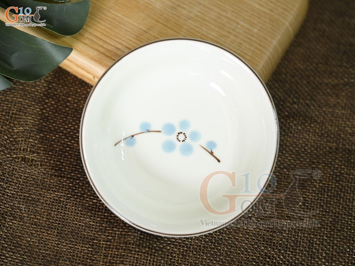 Đĩa muối men kem vẽ hoa Đào xanh Đĩa muối men kem vẽ hoa Đào xanh