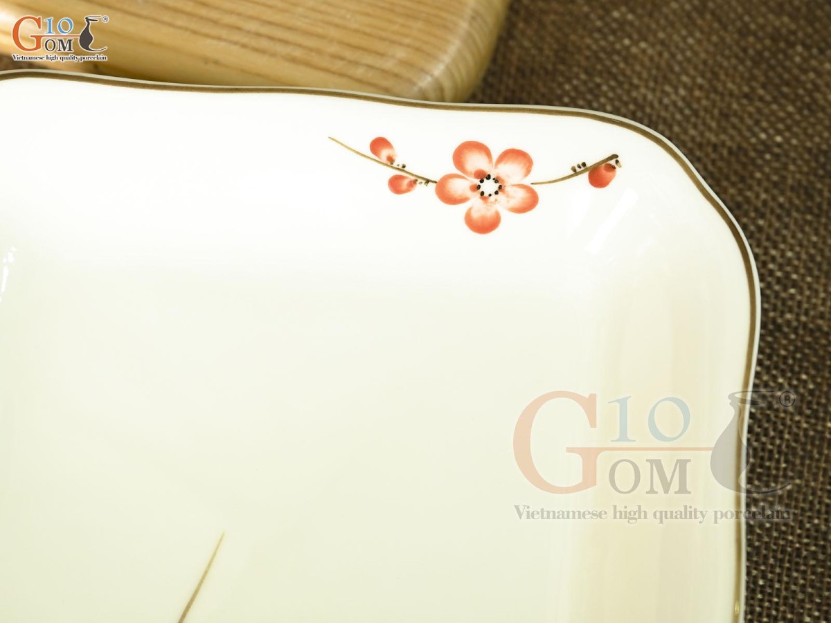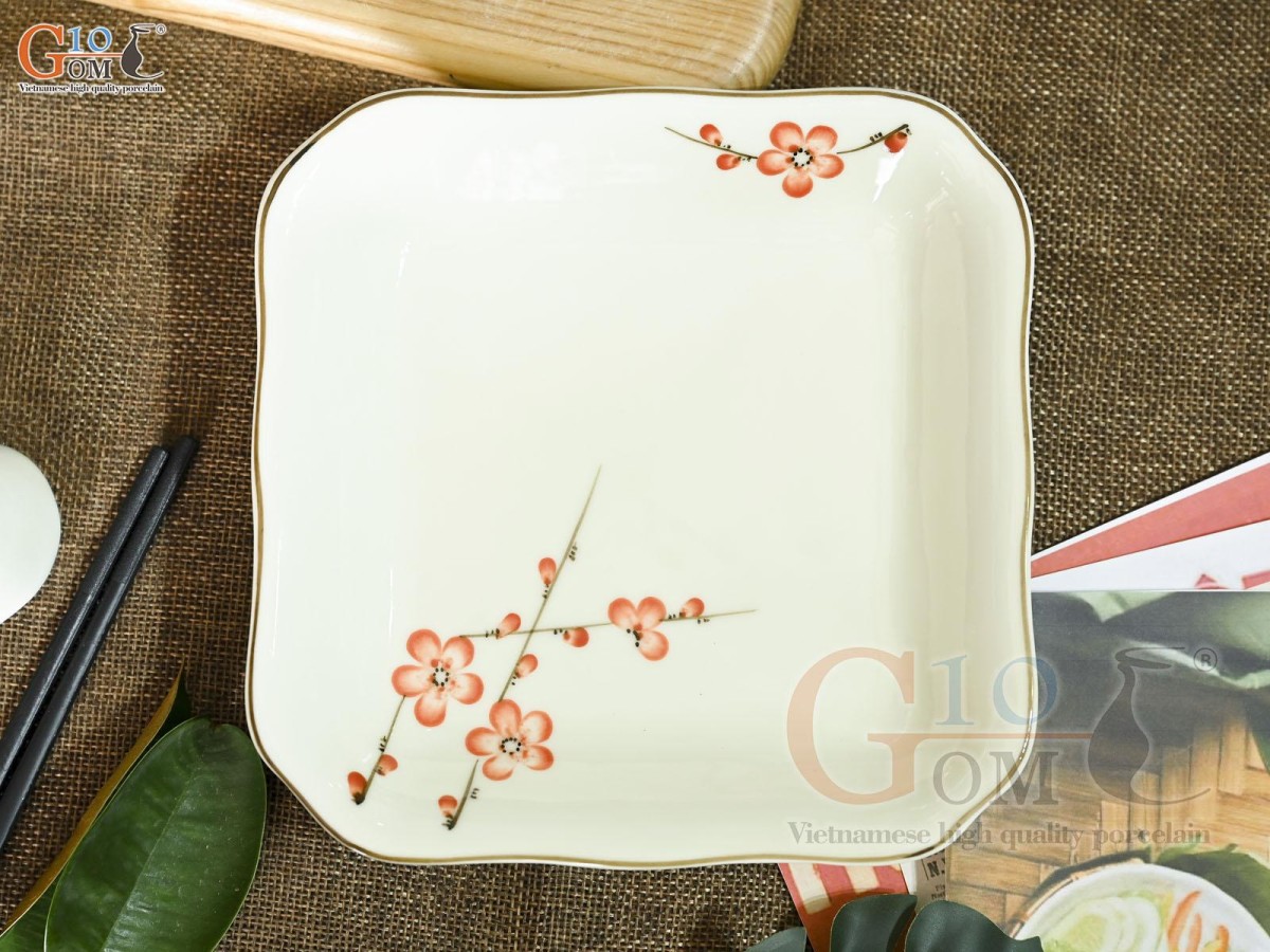 Đĩa vuông sâu lòng men kem vẽ hoa Đào đỏ, 18cm Đĩa vuông sâu lòng men kem vẽ hoa Đào đỏ, 18cm Đĩa vuông sâu lòng men kem vẽ hoa Đào đỏ, 18cm