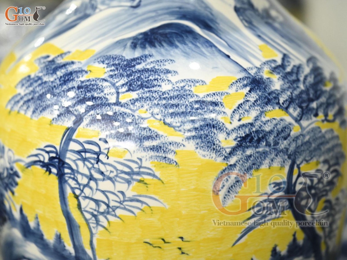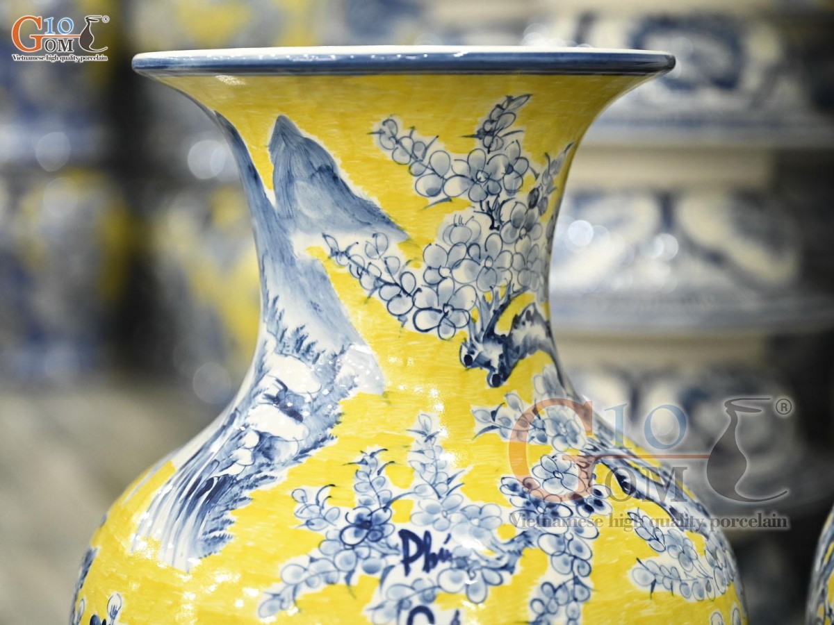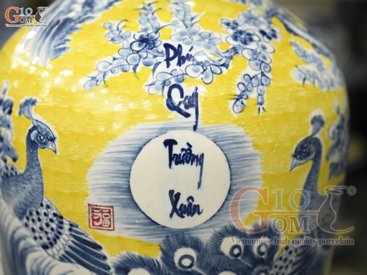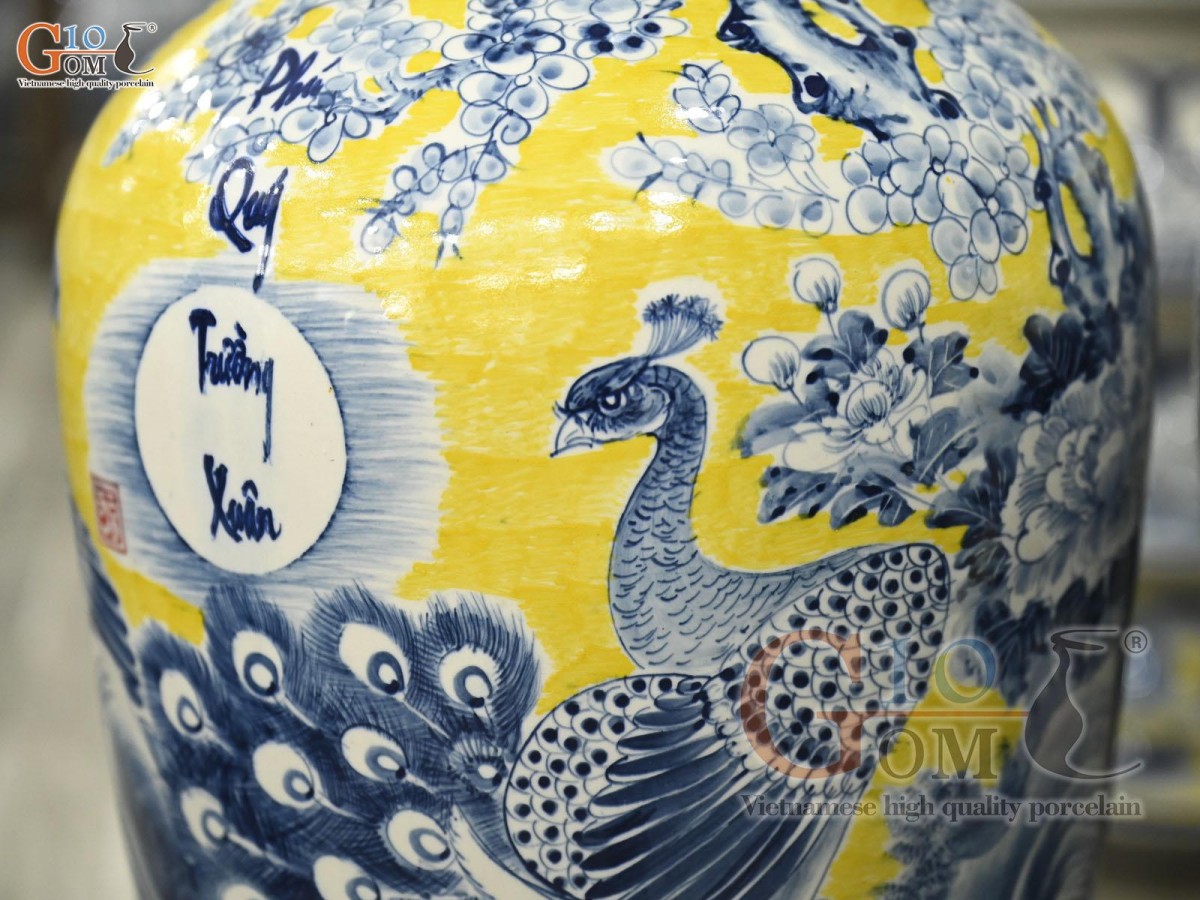 Đôi lộc bình men màu vẽ Phú Quý Trường Xuân nền vàng, cao 70cm