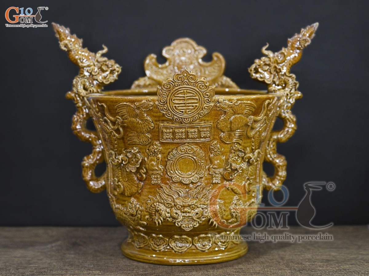 Gốm 10 cung cấp nhiều bát hương Bát Tràng thờ cúng với nhiều hoa văn, hoạ tiết tinh tế thích hợp với phong tục thờ cúng của người Việt. Với các màu sắc chủ yếu như: Bát hương men rạn, bát hương màu vàng, bát hương màu xanh lục bảo, bát hương men dong cổ, bát hương vẽ vàng... Để sở hữu bát hương Bát Tràng chính hãng với giá tốt quý khách hãy đến với Gốm 10. Liên hệ đặt hàng: 096 111 1010