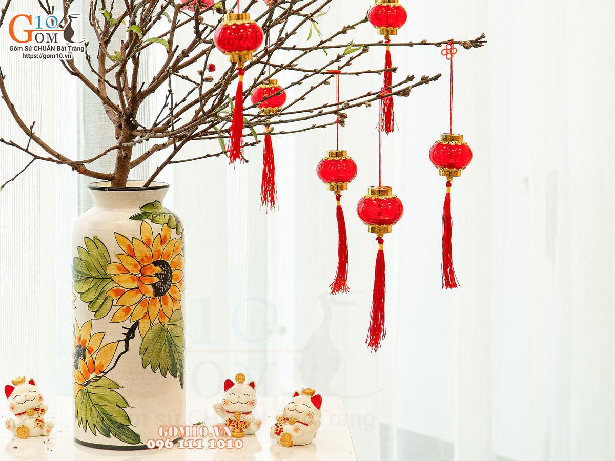 - Lọ cắm hoa dáng trụ tròn rất phù hợp để các bạn cắm các loại cành hoa có dáng cao, to như hoa đào, mai, hoa sen, hoa ly, hoa hướng dương, hoa lay ơn, hoa đồng tiền…