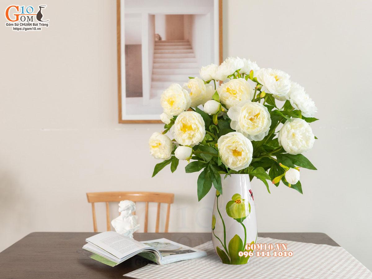 - Lọ cắm hoa thân bầu miệng rộng rất phù hợp cho các loại hoa có nhiều nhành như hoa cúc, hoa hồng, hoa quỳnh, hoa cẩm tú cầu…