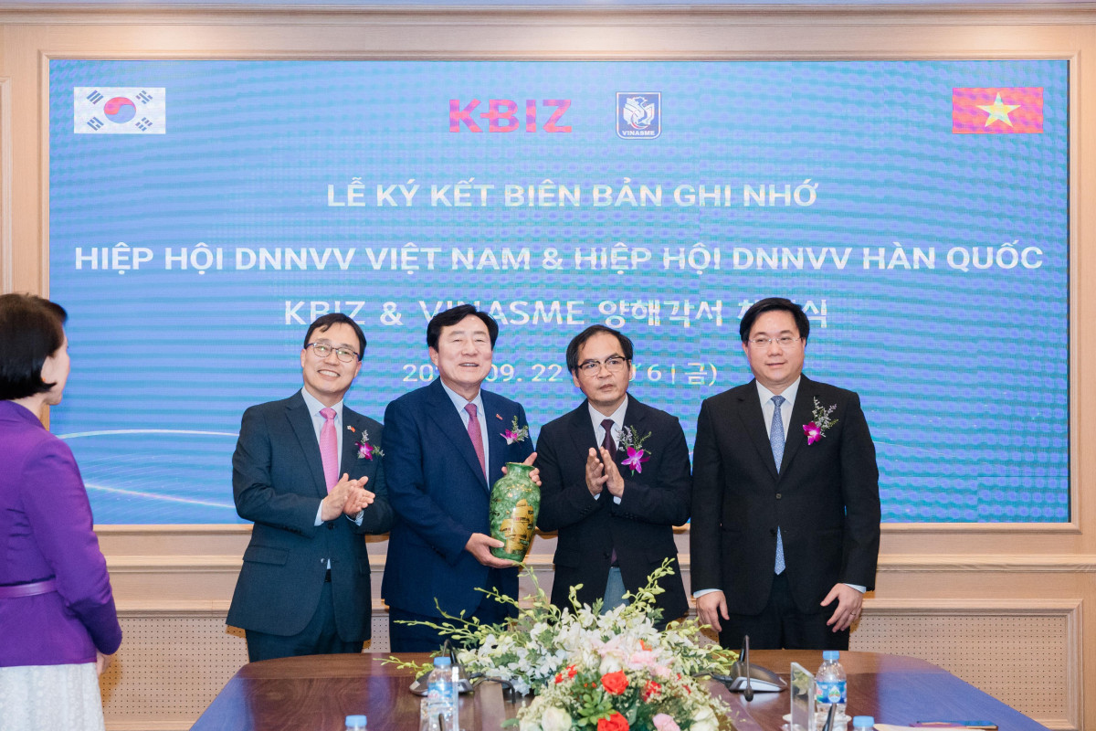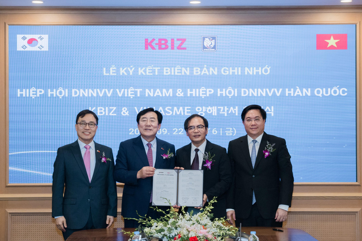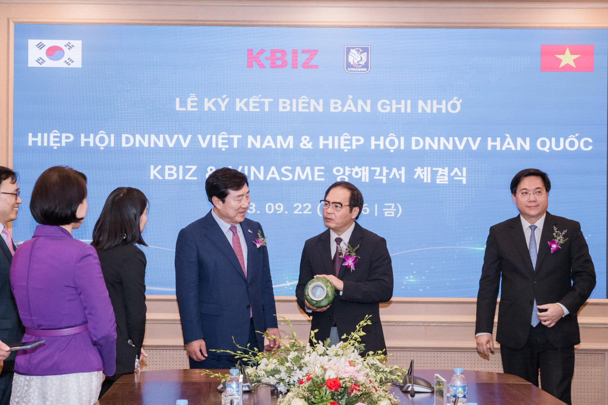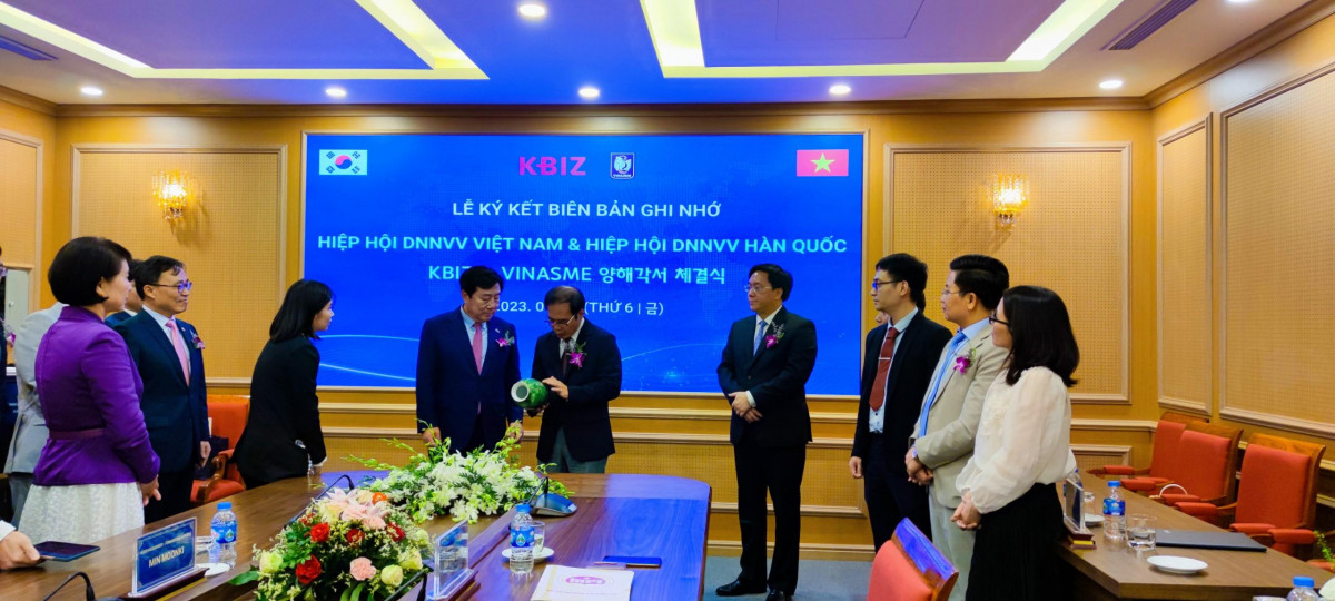 Chiều ngày 22-09-2023, Hiệp hội Doanh nghiệp nhỏ và vừa Việt Nam (VINASME) và Hiệp hội Doanh nghiệp nhỏ và vừa Hàn Quốc (KBIZ) thực hiện Lễ ký kết thỏa thuận hợp tác.