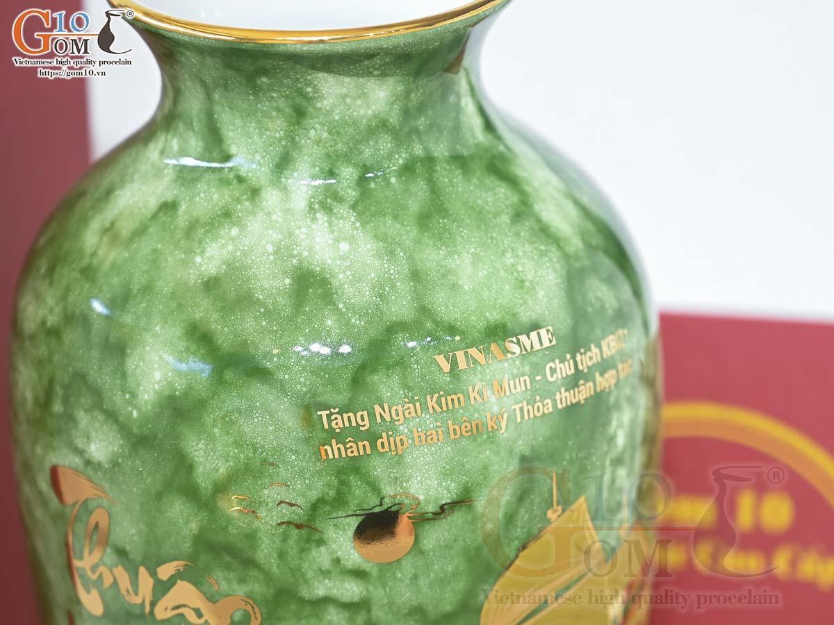 Ông Tô Hoài Nam - Phó Chủ Tịch kiêm Tổng Thư Ký VINASME, giới thiệu về sản phẩm thủ công truyền thống Bát Tràng, và những thông điệp ý nghĩa muốn gửi gắm trước khi trao phần quà lưu niệm cho Ông Kim Ki Mun