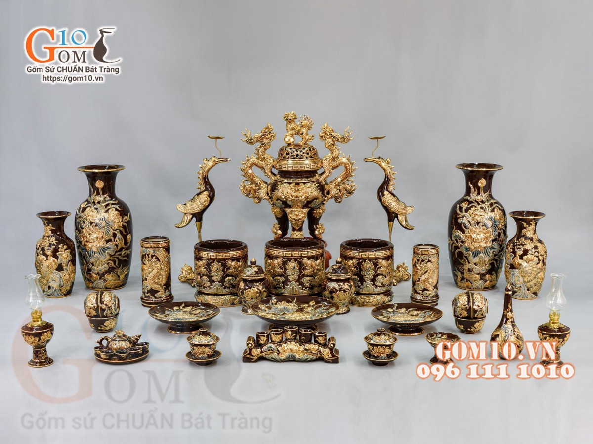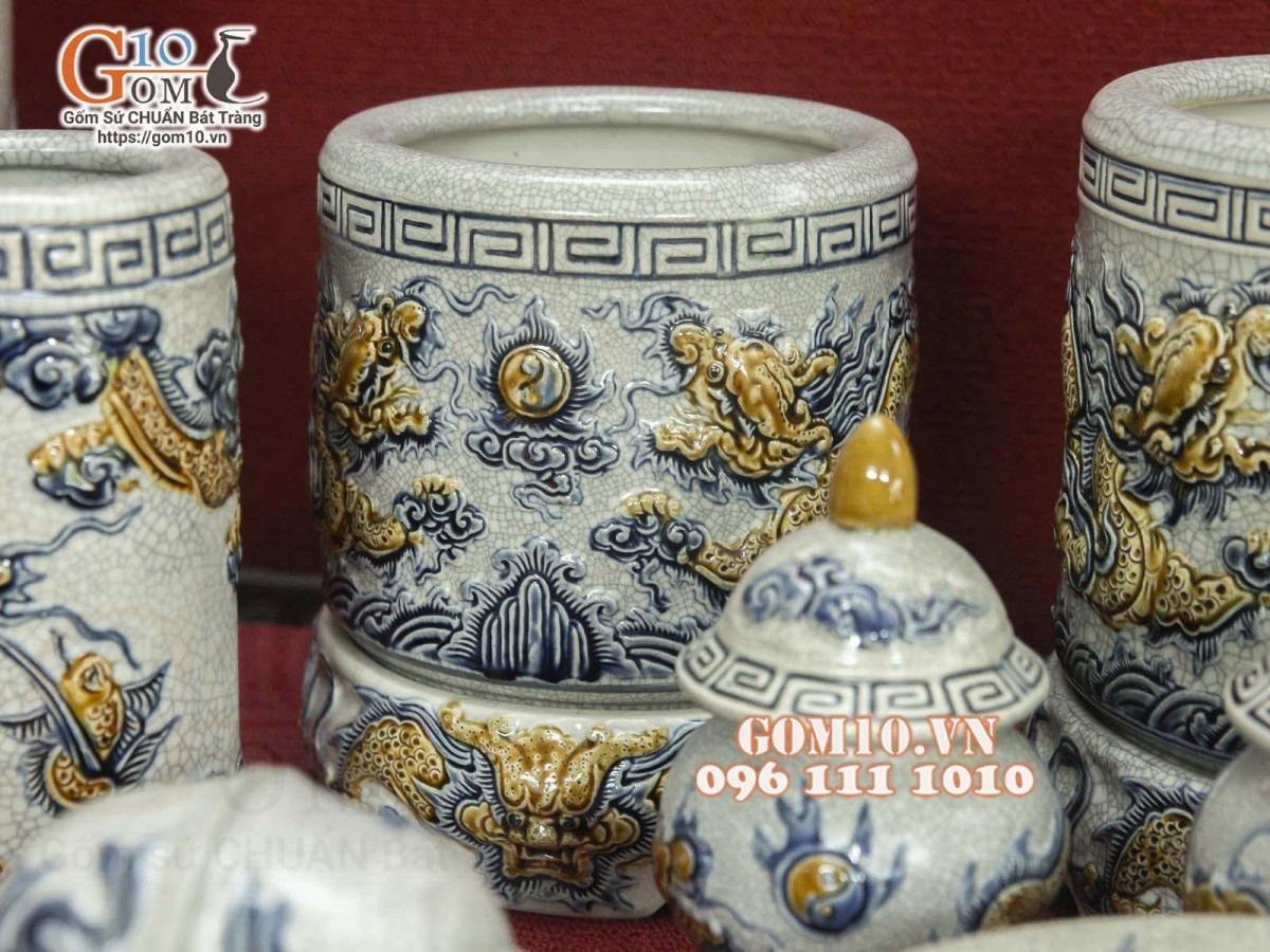 3.1 Bộ đồ thờ men rạn đắp nổi cao cấp Bát Tràng