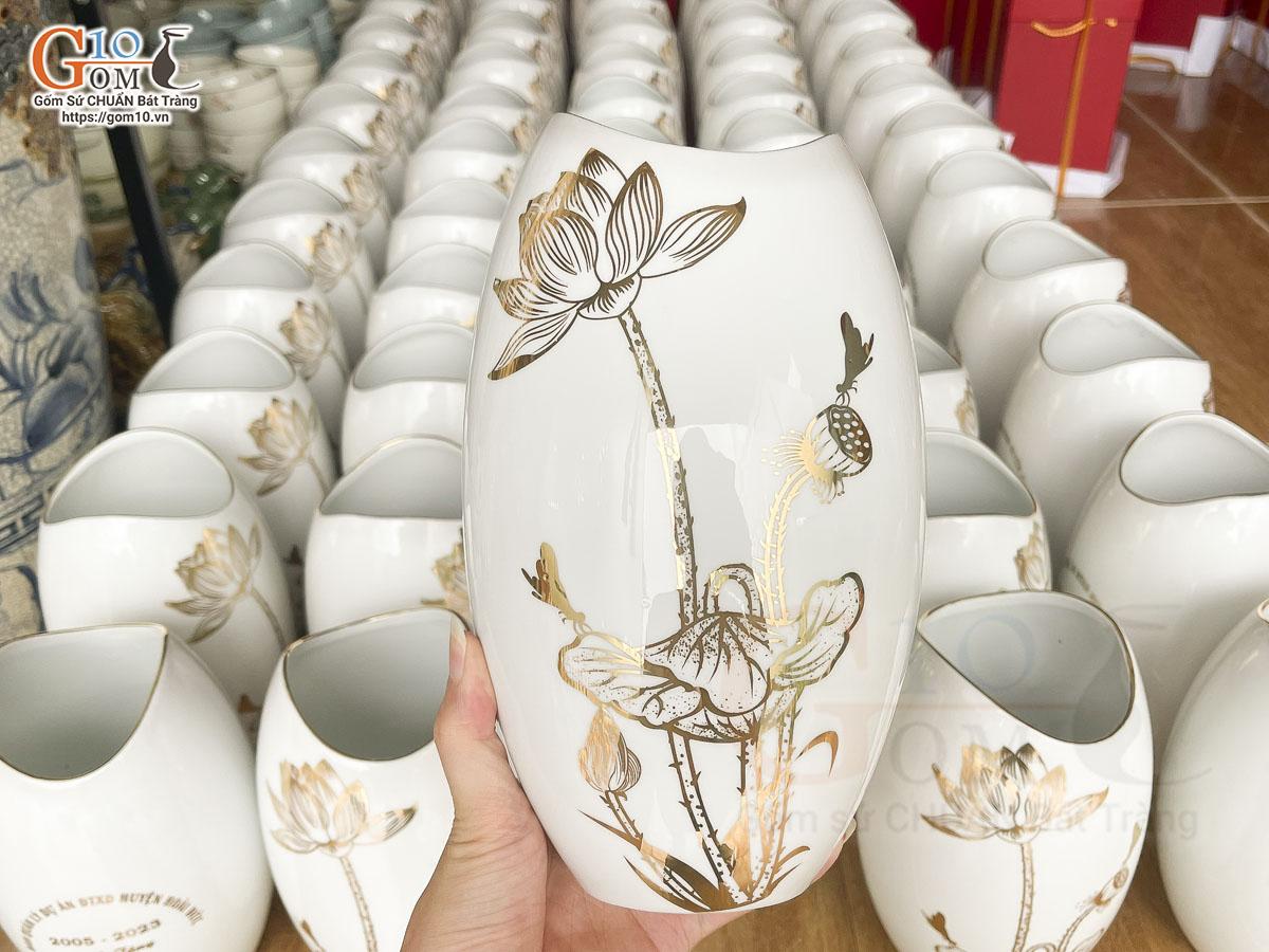 Những chiếc lọ cắm hoa gốm sứ Bát Tràng cũng là một trong những vật phẩm nằm trong top các sản phẩm Gốm sứ Bát Tràng in logo được nhiều công ty, tổ chức, đơn vị ưa chuộng lựa chọn trong suốt thời gian qua.